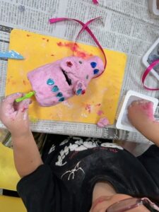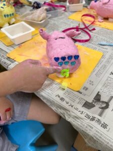 さて、オルゴールキッズでは、紙粘土で貯金箱の工作を行いました。