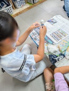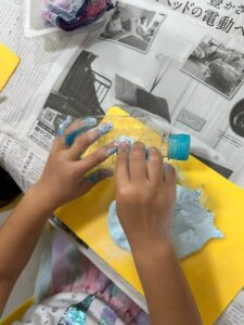 小学生のお友達は、形成後の作品に色を塗っていきます。