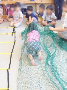 みんなそれぞれ順番を守りながら元気よく取り組み、待っているお友達は「がんばれ~」と熱い声援を送ってくれていました!