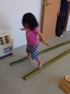 まずは竹の平均台です。