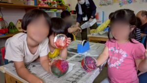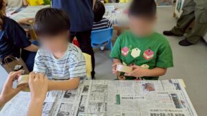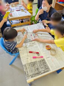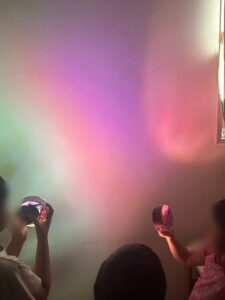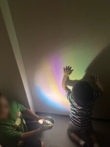 今日は朝から雨ですね じめじめした一日になりました。 今日のオルゴールキッズでは、作った作品で光を照らして遊びました。