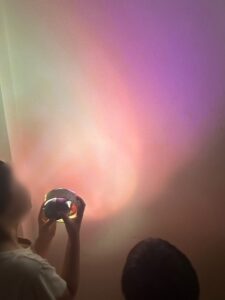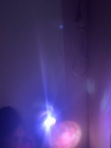 そして、明かりの薄い部屋に移動して、光をあてます。