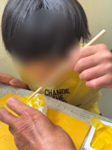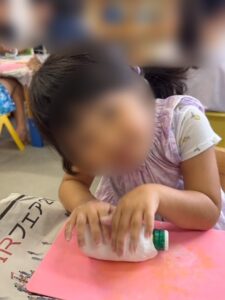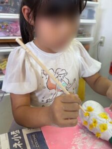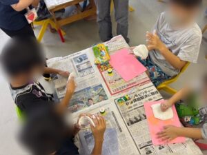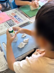 「紙粘土が乾いちゃう~!急げ急げ!!」と、みんな大急ぎでプスプス♪プスプス♪