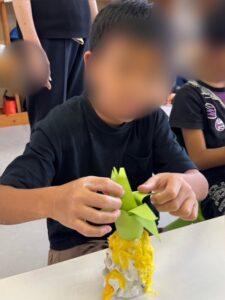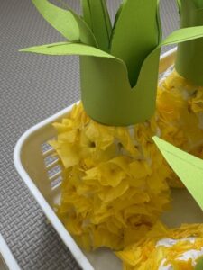 巻きつけながら「パイナップルや~!」「おいしそ~」と大盛り上がり!!葉っぱの巻き方にも個性があっていい感じです。