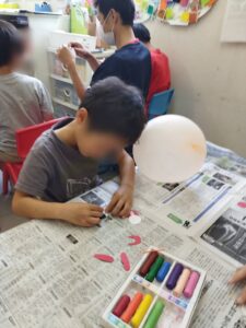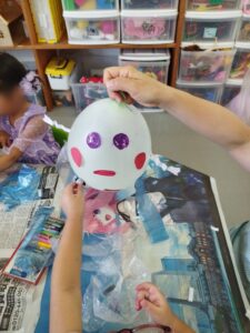 まずは風船にお顔のパーツを貼っていきます。