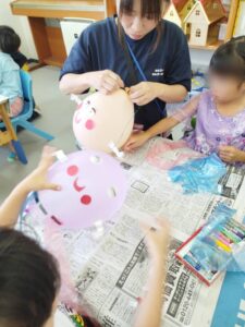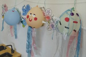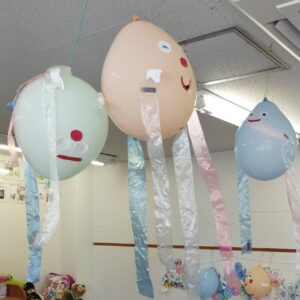 ゆらゆらオバケで遊んだあとは、みんなが帰る時間までお部屋に飾りました♪