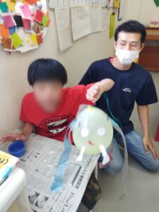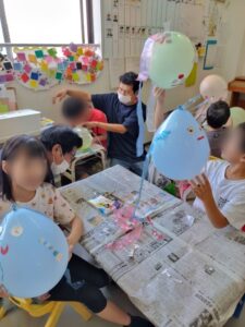 完成すると、みんなポ~ンと上に飛ばしてみたり、ぶら下げてゆらゆらさせたり・・・