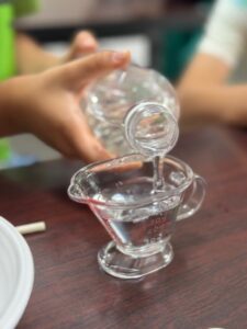 洗濯のり・水・ホウ砂・色水・割り箸・計量器