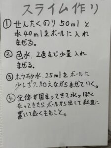 完成後には、みんなでスライム遊びを行い、楽しい一日となりました。