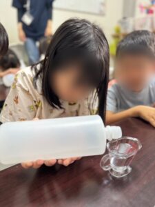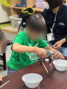 「スライムを触って遊ぶのが楽しかった」「固まっていく様子に驚いた」「色や形が変わるのが面白かった」と嬉しそうに話をしてくれました。