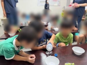 今日は子どもたちが大好きな「スライム作り」を行いました!!