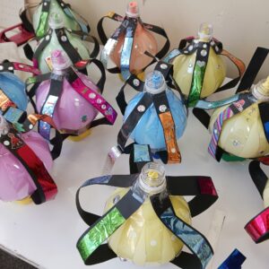 最後に、ペットボトルの中で風船を膨らませ、持ち手をつけたら完成です!