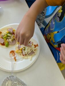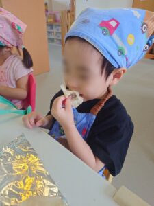 今日、オルゴールkidsでは、餃子の皮を使った料理体験を行いました。