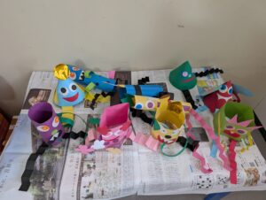 子どもたちが頑張って作った作品は、しばらくの間、オルゴールkidsにて飾らせていただきます。