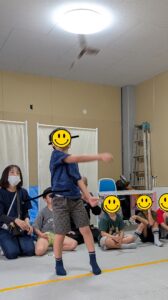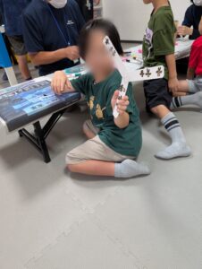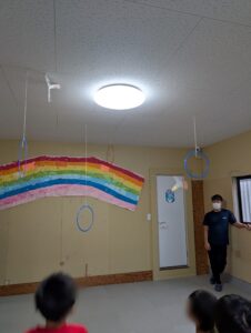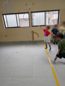 工作後に作ったブーメランで的当てや輪潜りゲームを行い楽しく遊びました!