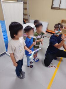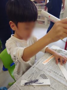 牛乳パックで作るブーメランに子どもたちは驚いた様子でした。
