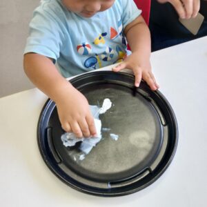 手に絵の具がつくのが苦手なお友だちはスポンジを使いました。