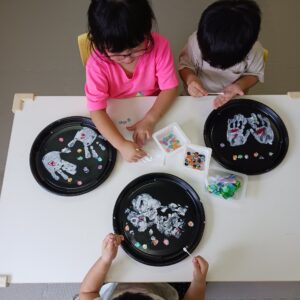 顔を胴体を合体させたら、このあとはみんな各々好きなように飾りつけし、個性豊かに表現してもらいました。