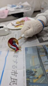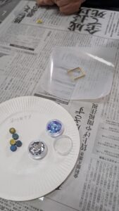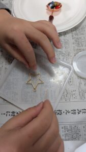 材料がそろったら専用の炉を使ってワックスを溶かし型にラメなどと一緒に そーっと流し込みます。