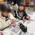 セロテープを貼るのが好きなお友だちが多いので「ペタン、ペタン」と、楽しそうな声が聞こえていました。
