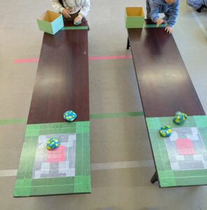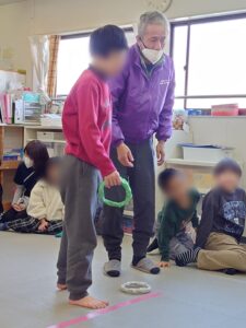 今日は4つのゲームを用意しました〔わなげ・ポンポンゲーム・カーリング・風船バスケット〕