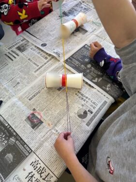 「どのように飛ぶの…?」と不思議そうにみていたお友だちがいました。