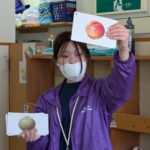 また、果物やお野菜の色と同じ色のカラーボールを探して、絵カードと同じ色の所に置いていったりもしました。